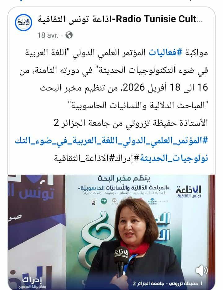 يعتبر مشروع الأطلس اللّسانيّ التّونسيّ "LAT" من أهمّ المشاريع العلميّة والبحثيّة الّتي يُشرف على إنجازها المخبر، وذلك لأهمّيته في ...