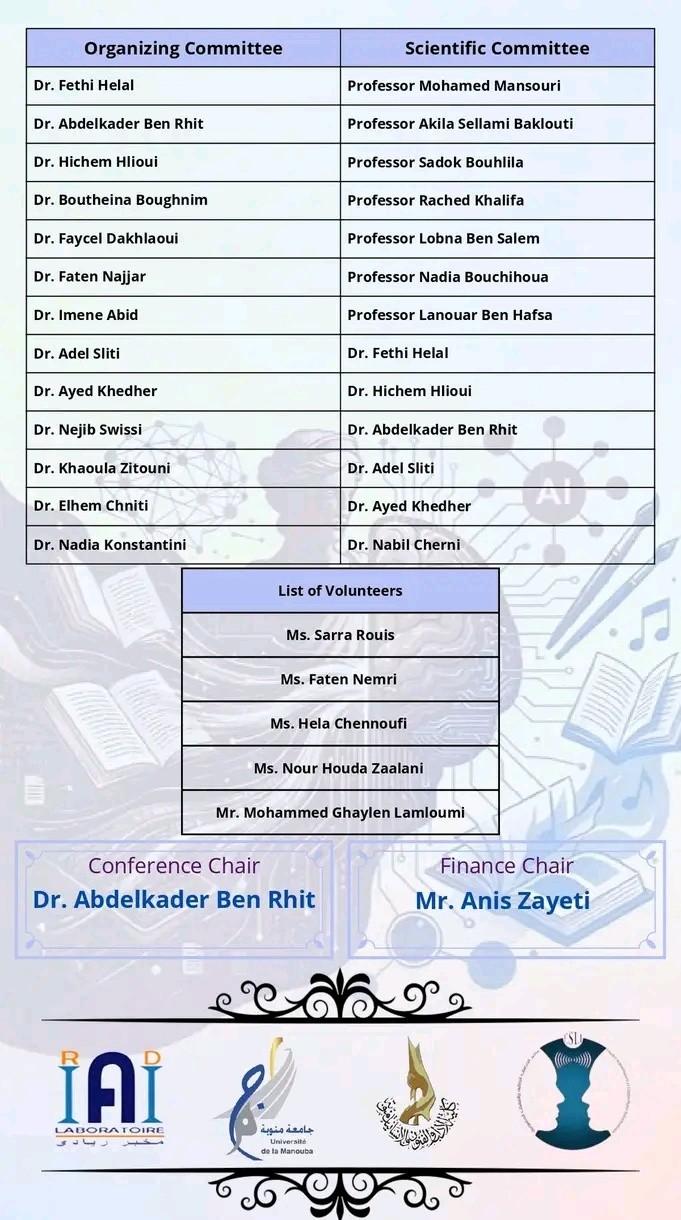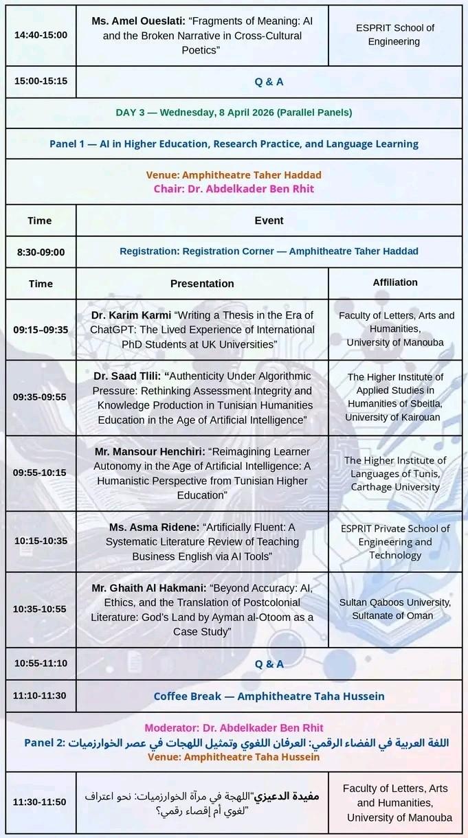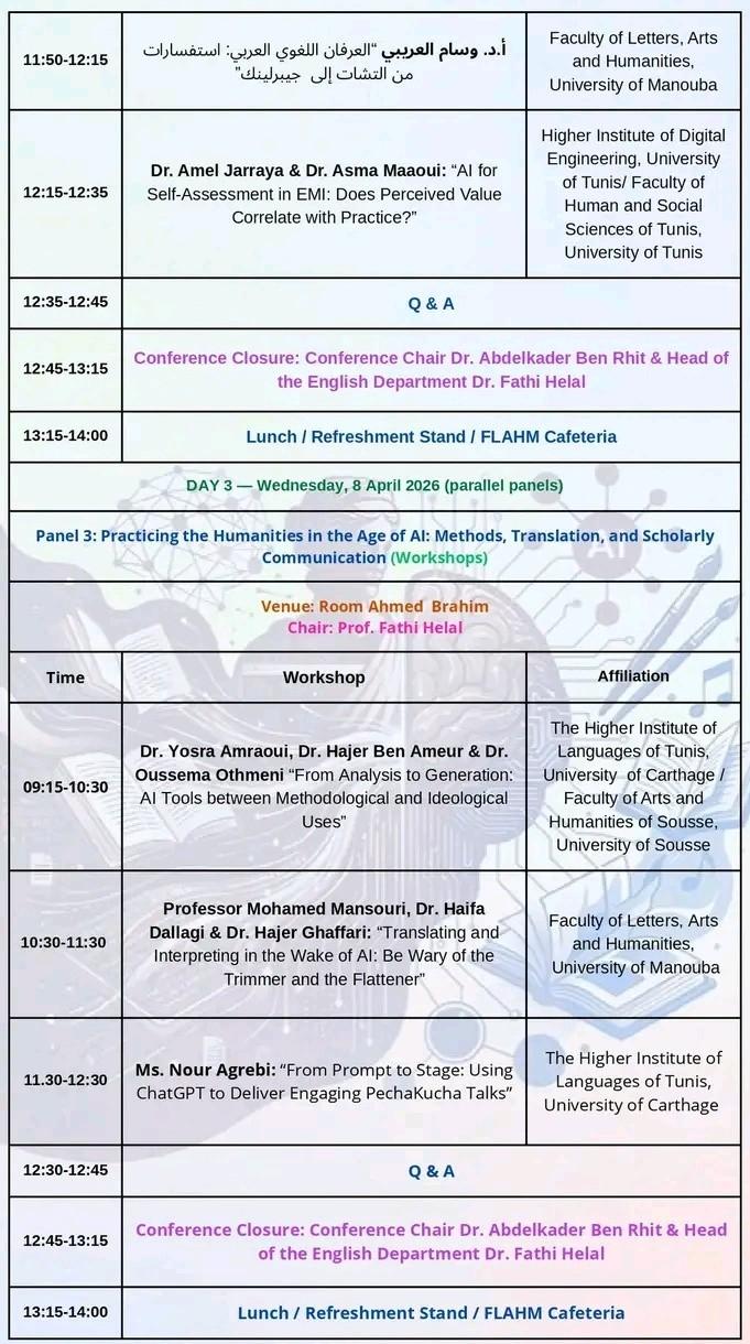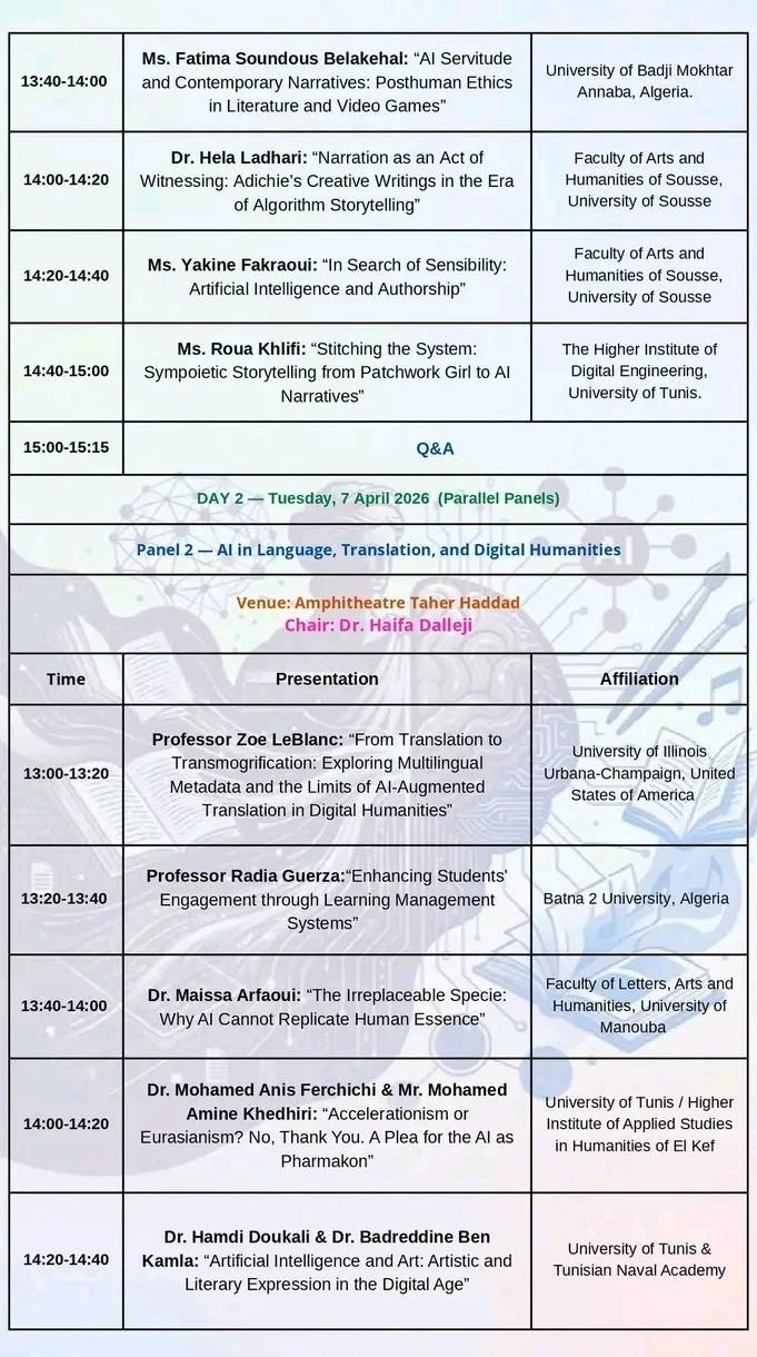 المؤتمر العلمي الدولي الموسوم ب «الذكاء الاصطناعي والإنسانيات» وذلك أيام 6 و7 و8 أفريل 2026