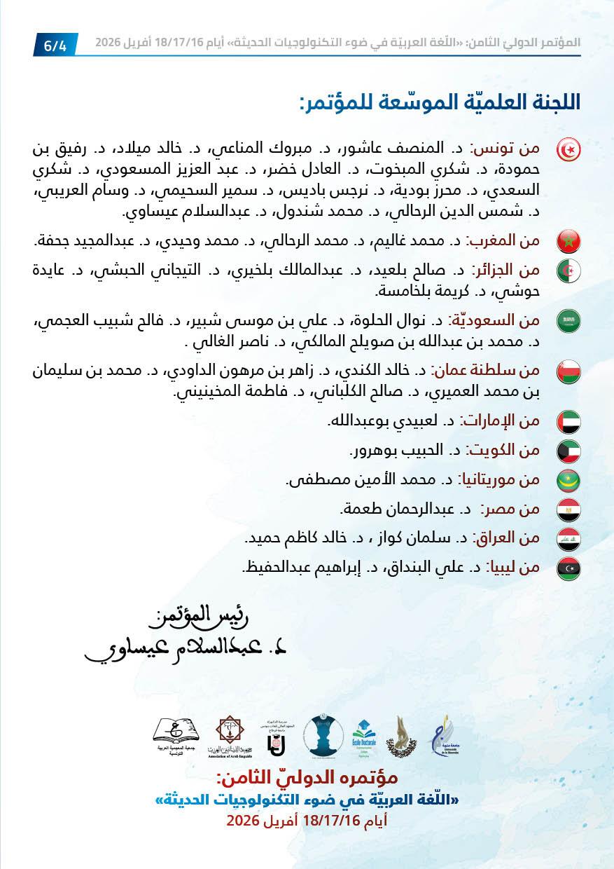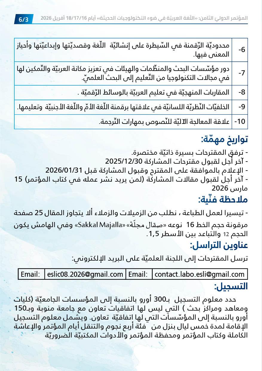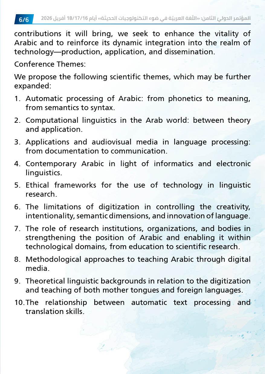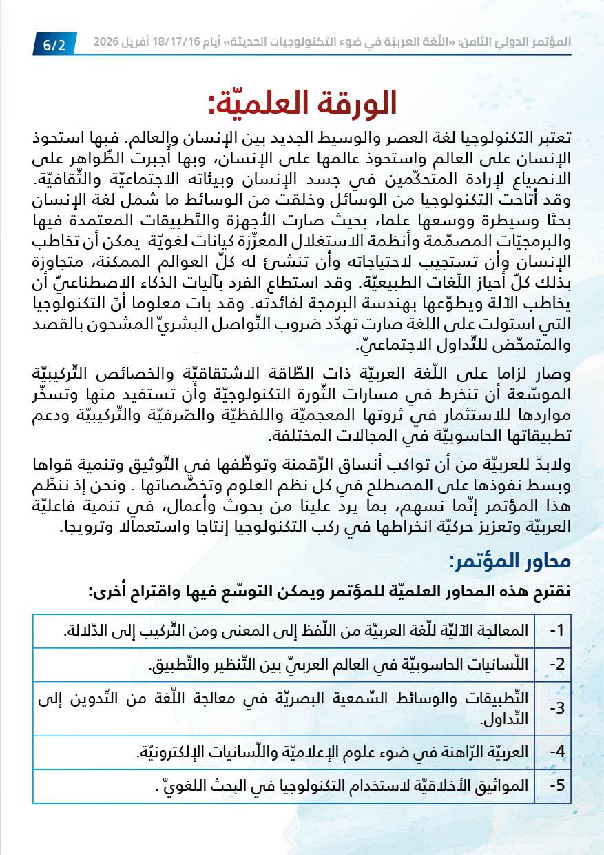 المؤتمر العلميّ الدوليّ الثامن - اللّغة العربيّة في ضوءالتكنولوجيّات الحديثة - أيام 16-17-18 أفريل 2026.pdf